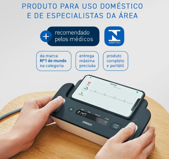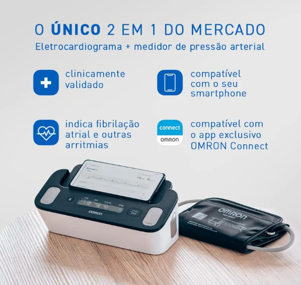 Além de ser um equipamento clinicamente validado, é compatível com seu smartphone (APP exclusivo OMRON conect) e indica fibrilação arterial e outros tipos de arritmia.